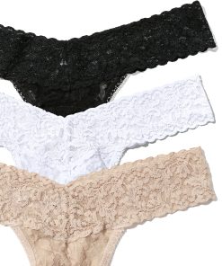 Hanky Panky Women’s 3 Pack Signature Lace® Low Rise Thongs | Black & White & Chai