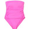 - Ruching throughout front of swim bodice