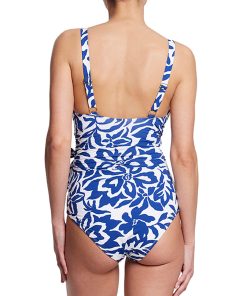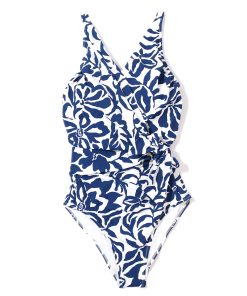 - Adjustable wrap style with ruching throughout front of swim bodice