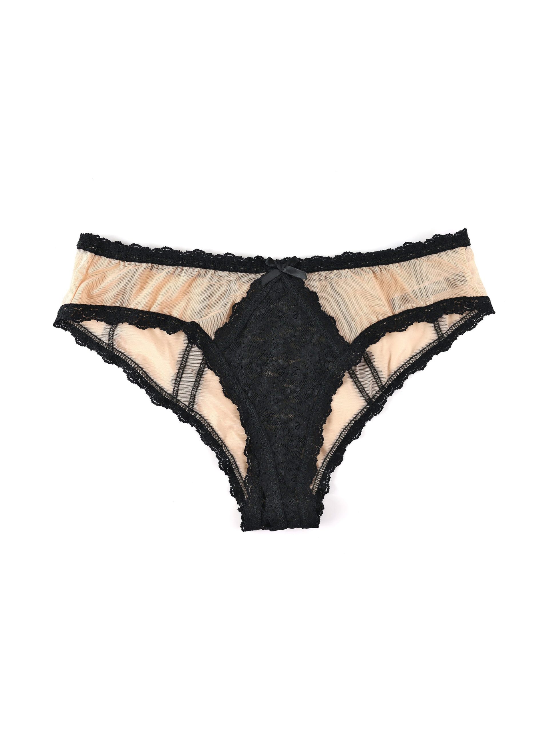 Mocha and black entwine for a Nude Illusion, in crotchless panties from our Hanky Panky &oh™ collection.